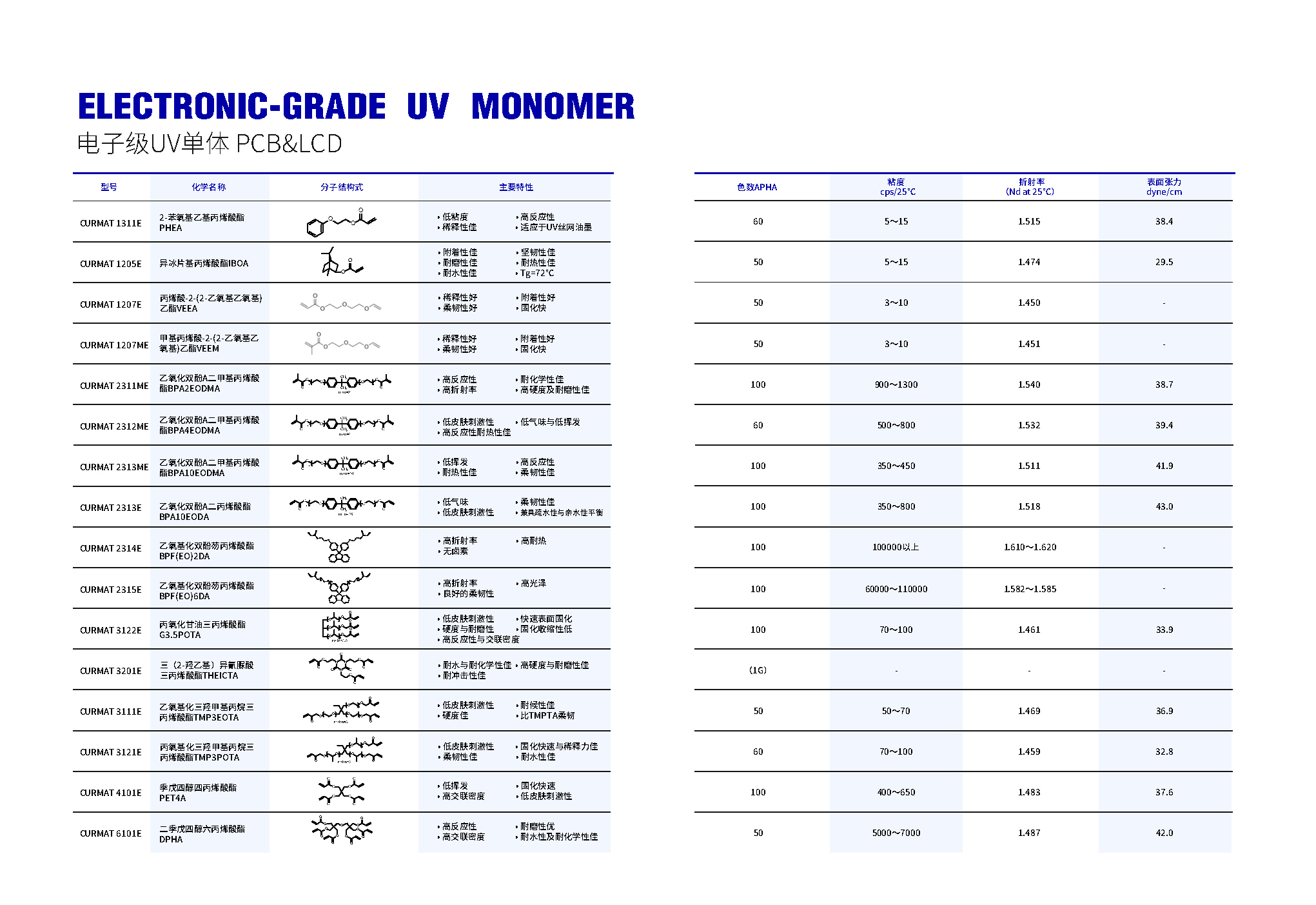 电子级UV单体 PCB&LCD