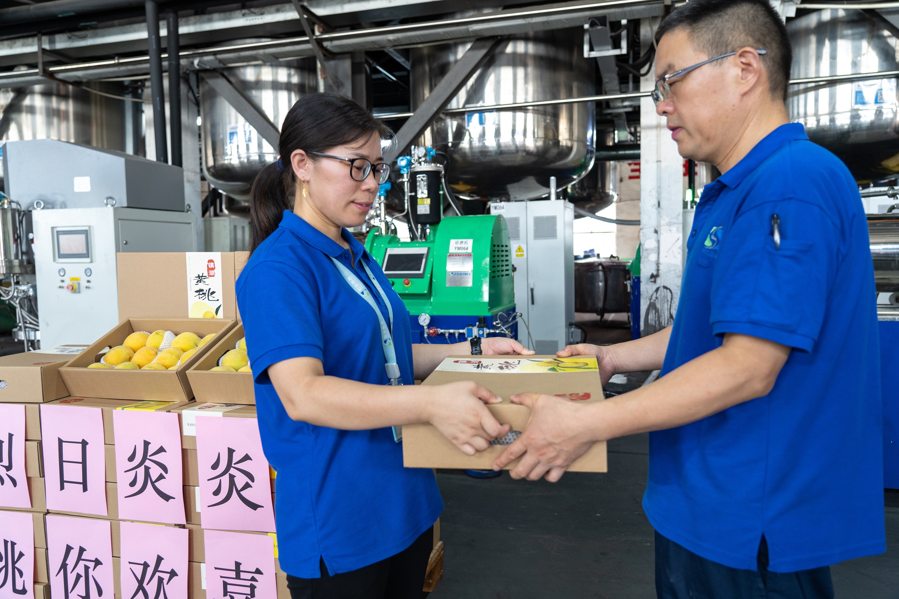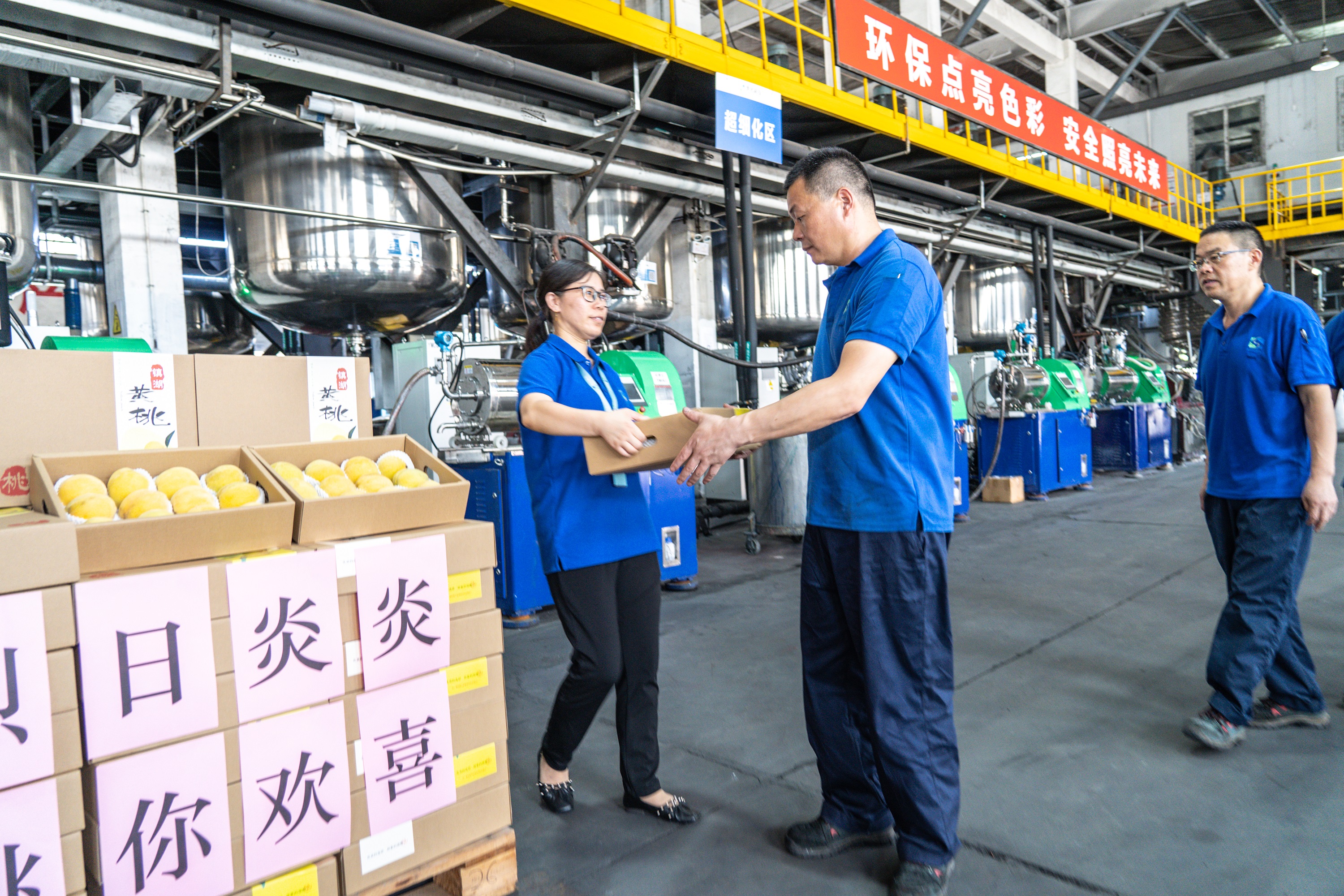 陆总为一线员工们准备了精美黄桃礼盒,黄桃不仅因其清爽可口而倍受欢迎,更寓意着丰收与甜蜜,象征着集团对员工们的关怀与祝福。